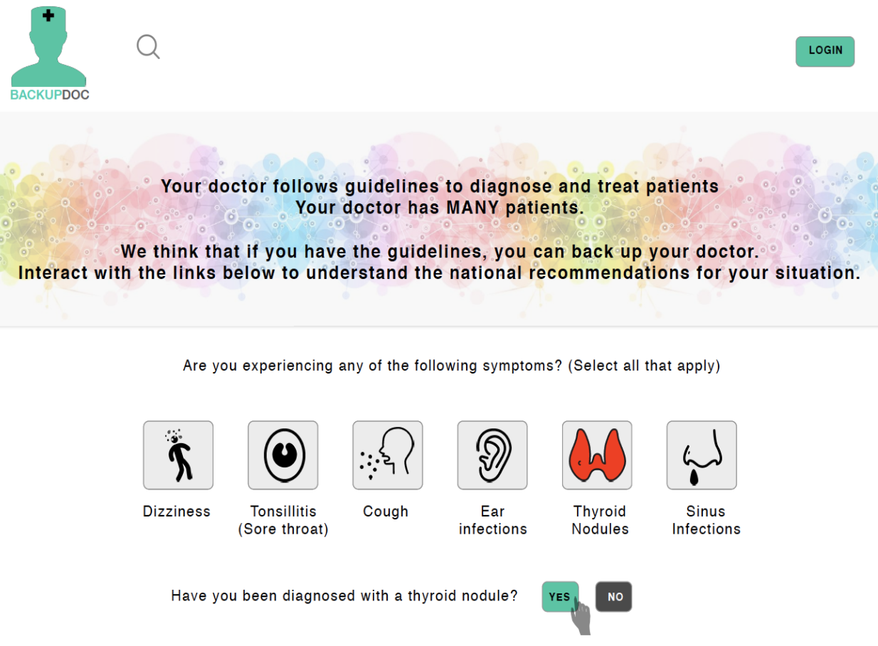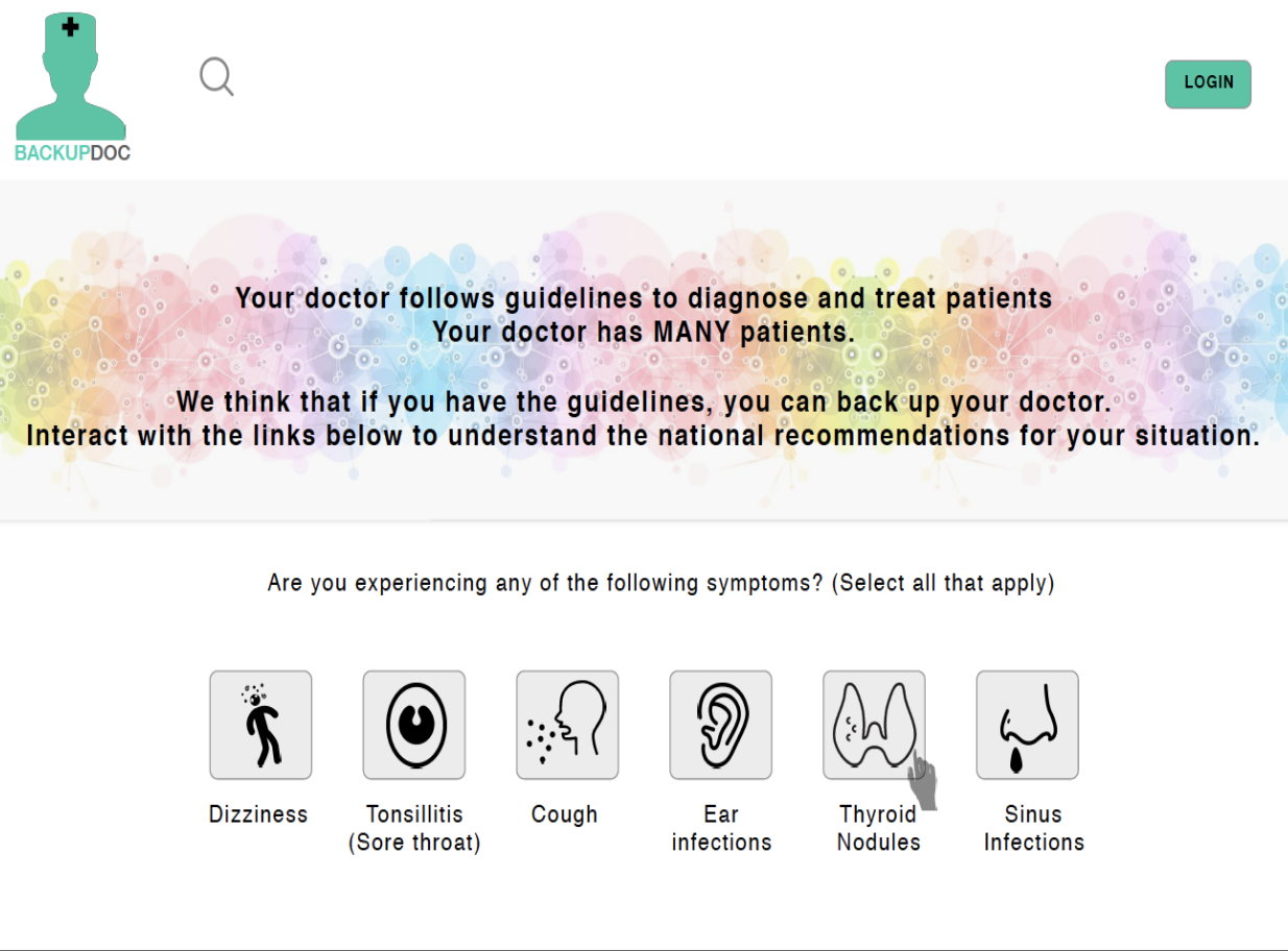 BackUpDoc is an organization aimed at solving patient centric problems in interpreting the available algorithms of patient care directly to the patient. Their applications help the end consumer, by empowering him or her to be more involved in their own healthcare. This patient involvement is aimed at increased vigilance on the part of the major stakeholders, discouraging variation from the standard of care and leading to a more informed patient doctor relationship.