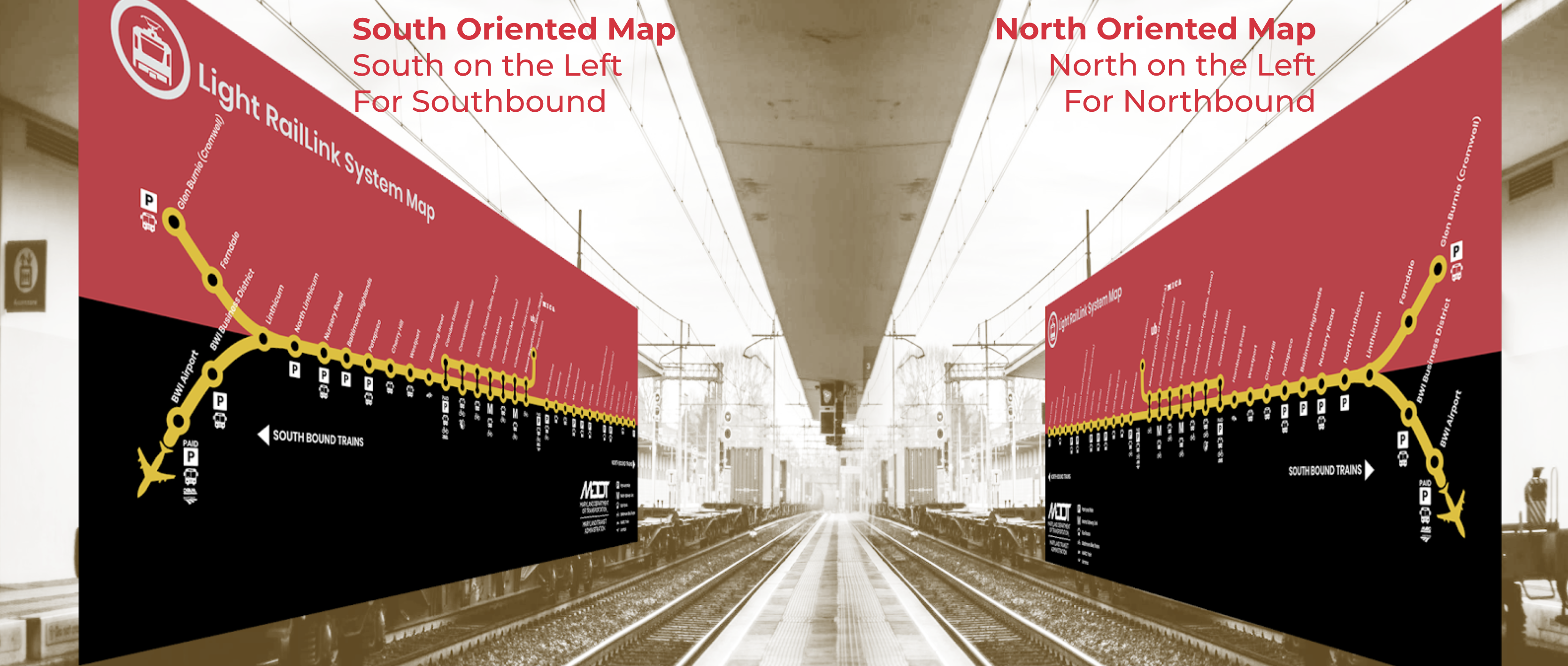 Damaged, outdated, or missing maps combined with directional confusion while on station platforms harms user experience and perception of Light rail.